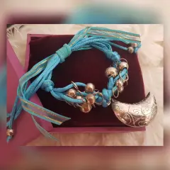 Pulsera Autoajustable en cordón encerado color AZUL BEBÉ, esferas PLATEADAS y dije luna tono PLATEADO. Dimensiones cms: 6 (da hasta 10), dije 4.5 x 2.***LA PULSERA SE ENTREGA SIN CAJA, ESTA SOLO ES UN ELEMENTO DECORATIVO***