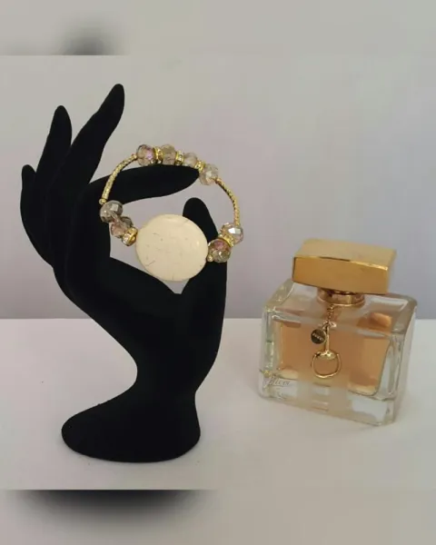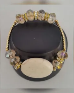 Pulsera Bisutería Fina y en Oro Laminado. Pulsera autoajustable en oro laminado color DORADO, piedra y bisutería fina en tono MARFIL MARMOLEADO/CHAMPAGNE. Dimensiones cms: 6.3 diamétro.***QUEDA A UNA MUÑECA DELGADA***20 micras de oro 14 kilates adheridas a presión, calor y laser sobre metal (cobre o latón). El peso en oro de una pieza en oro laminado, corresponde a 1/20o de su peso total, o sea, un 5% oro.***EL BRILLO DE LA BISUTERÍA ES MUY BELLO Y LA FOTOGRAFÍA NO LO CAPTA. LA EXCELENTE CALIDAD DE LA MISMA, PERMITE QUE NO SE OPAQUE CON EL USO***