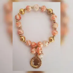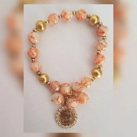 Pulsera Bitono Dije HK. Pulsera autoajustable esferas acrílico bitono BLANCO/ROJO MARMOLEADO, esferas en oro laminado y dije Hello Kitty c/microcirconia. Dimensiones cms: 6 diámetro, dije 1 diámetro.***EL MARMOLEADO DE COLOR ES MUY BELLO Y LA FOTOGRAFÍA NO LO CAPTA***QUEDA A UNA MUÑECA DELGADA***