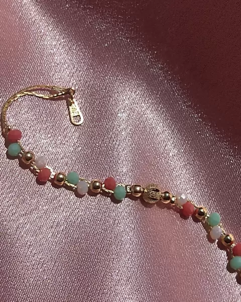 Divina pulsera en chapa de oro, con una bonita combinación de colores, súper bonito y de excelente calidad ❤️