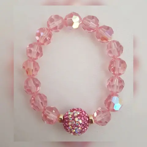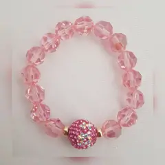 Pulsera en cristal europeo facetado de alta calidad color ROSA BEBÉ, dije bola de fuego bitono ROSA/TRANSLÚCIDO Swarovski Elements y rodel oro Gold Filled. Dimensiones cms: 6 diámetro, dije 4.5 circunferencia.***EL BRILLO DE LA PULSERA ES EXTRAORDINARIO***QUEDA A UNA MUÑECA DELGADA***