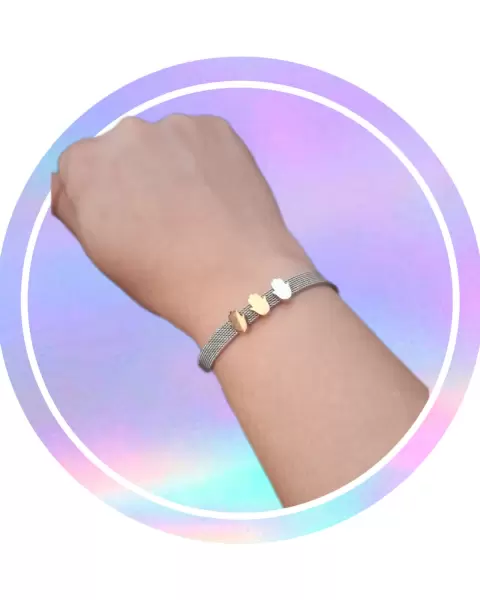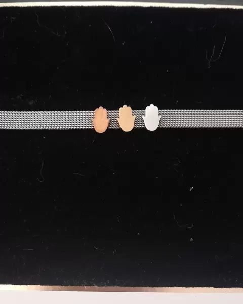 Linda pulsera de ACERO INOXIDABLE NUEVA. tiene tre manitas de diferente color Una plateada, una dorada, una rosa dorado