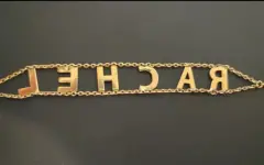 Pulso de oro de 14k, con nombre, de la marca Bizarro. Oro italiano, tipo diamantado en las letras,17 cm de largo(tienes 3 aros para ajustarse el largo)Solo tiene como detalle en la parte de atrás de la letra E y C una pequeña marca de soldadura para reforzarlas(se muestra en última foto)✨🫶🏻Se entrega con su certificado de autenticidad,cubre polvo,estuche y bolsa.💯👌🏻