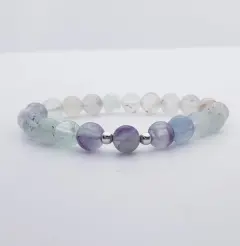 Pulsera de piedras naturales• Elaborada con cuentas de piedra fluorita• Contiene dos cuentas de plata .925 de 4 mm• Cordón elástico resistente• Incluye una bolsita almacenadora (el color puede variar)La Fluorita es un mineral constituido, principalmente, por flúor y calcio. Es muy apreciado por su variada gama de colores que puede presentar, como tonalidades de violeta, verde claro, amarillo, rosa, verde azulado, entre otros.Se dice que la Fluorita fomenta el equilibro fisico-emocional en la persona que la porta. Es un equilibrante de energías, por lo que ayuda mucho en periodos en que la persona está padeciendo de obsesiones sentimentales con parejas tóxicas. También aporta claridad y equilibrio en el tema de los vicios, los trastornos alimenticios, entre otros.Es ideal para calmar los nervios y tener claridad de pensamiento.Animate a usarla.