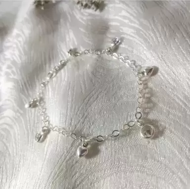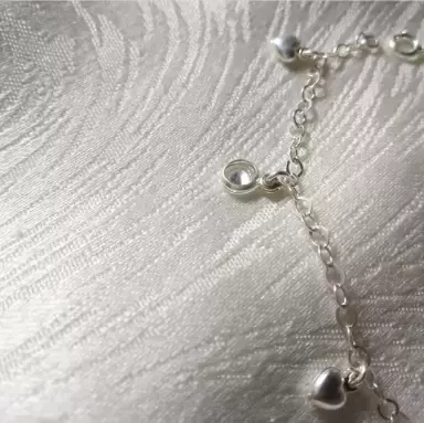 Pulsera de plata de corazones y zirconias. Mide 19cm de largo Plata ley .925