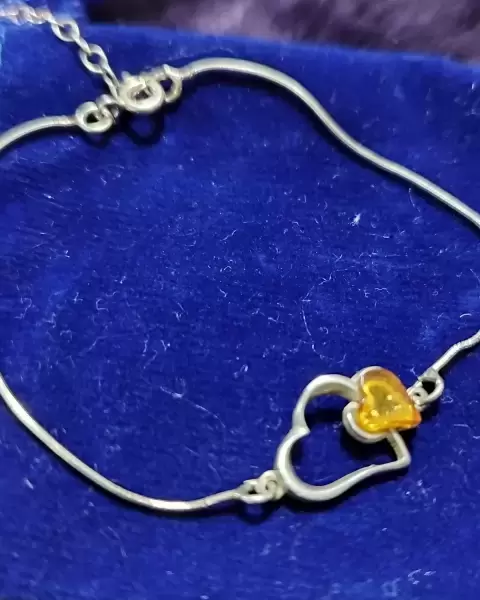 Pulsera de plata y ámbar. Pulsera de plata .925 con ámbar natural, recuerda que al ser una gema preciosa de alto valor, presenta imperfecciones y el precio es alto...El ámbar es un símbolo de felicidad y salud.