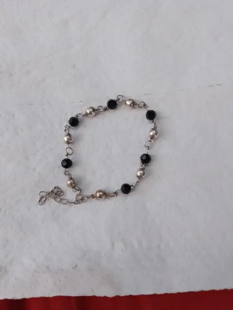 Pulsera de plata y cristal negro. Pulsera de plata con cristales negros