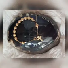 Pulsera para NIÑA esferas efecto diamantado en gold filled, dije en gold filled y cierre p/reasa. Dimensiones cms: 15.5 largo, dije 2 x 1.***EL BRILLO DE LA PULSERA ES MUY LINDO Y NO LO CAPTA LA FOTOGRAFÍA***ES PARA NIÑA*****20 micras de oro 14 kilates adheridas a presión, calor y laser sobre metal (cobre o latón). El peso en oro de una pieza en gold filled, corresponde a 1/20o de su peso total, o sea, un 5% oro.**