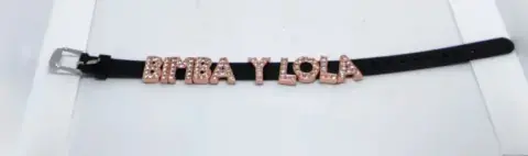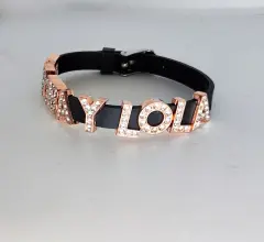 Hermosa pulsera color negro de silicón con letras color cobre y cristales de acero inoxidable estar en perfecto estado no tiene ningún detalle completamente nuevas