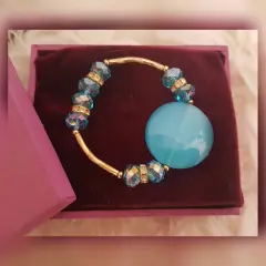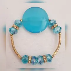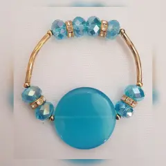 Pulsera Oro Laminado y Cristal Facetado. Pulsera autoajustable c/tubo y esferas en oro laminado, piedra sintética, rodel de pave c/circonias y cristal facetado en tono AZUL FRANCIA. Dimensiones cms: 5.5 diamétro.***EL BRILLO DE LA PULSERA ES MUY BELLO Y NO LO CAPTA LA FOTOGRAFÍA***QUEDA A UNA MUÑECA DELGADA******LA PULSERA SE ENTREGA SIN CAJA, ESTA SOLO ES UN ELEMENTO DECORATIVO***