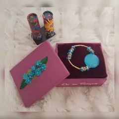 Pulsera autoajustable c/tubo y esferas en oro laminado, piedra sintética, rodel de pave c/circonias y cristal facetado en tono AZUL FRANCIA. Dimensiones cms: 5.5 diamétro.***EL BRILLO DE LA PULSERA ES MUY BELLO Y NO LO CAPTA LA FOTOGRAFÍA***QUEDA A UNA MUÑECA DELGADA******LA PULSERA SE ENTREGA SIN CAJA, ESTA SOLO ES UN ELEMENTO DECORATIVO***