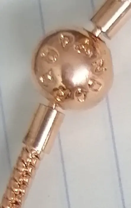 Pulsera Pandora 9 charms chapeada en oro rosa poco uso mediana tipo serpiente viene con el cubre polvo y cajita hermosa