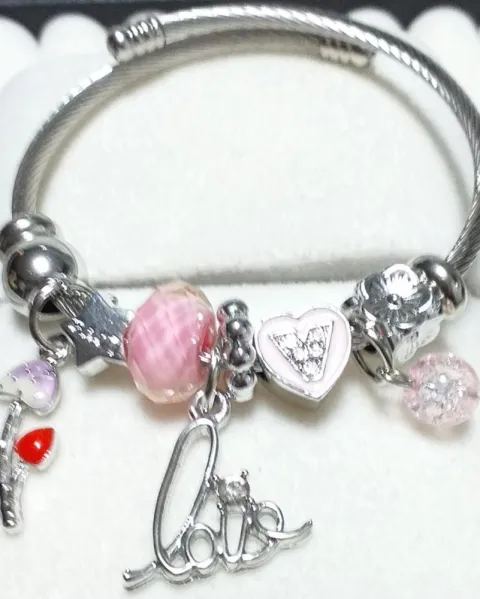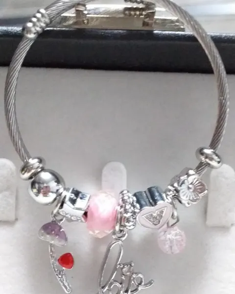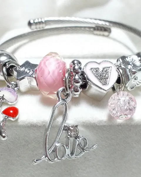 Linda pulsera tipo Pandora Love , en Acero Quirúrgico inoxidable de 316L de excelente calidad. Medida ajustable
