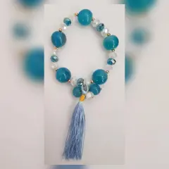 Pulsera Piedra, Cristal & Copete. Pulsera Autoajustable c/piedra natural tono VERDE ESMERALDA DEGRADADO, cristal facetado color BLANCO/VERDE ESMERALDA efecto tornasol, esferas en oro laminado y copete. Dimensiones cms: 6 diámetro.***EL BRILLO DE LA PULSERA ES MUY BELLO Y NO LO CAPTA LA FOTOGRAFÍA***QUEDA A UNA MUÑECA DELGADA******LA PULSERA SE ENTREGA SIN CAJA, ESTA SOLO ES UN ELEMENTO DECORATIVO***