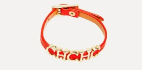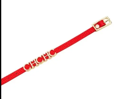 Linda pulsera de piel sintética color rojo con letras doradas de acero inoxidable , hebilla color dorado en acero