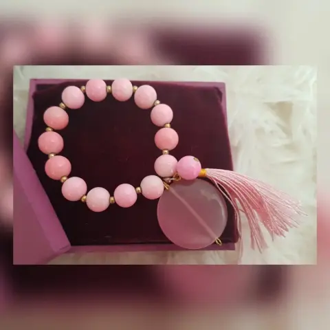 Pulsera Rosa Dije Piedra Redonda
