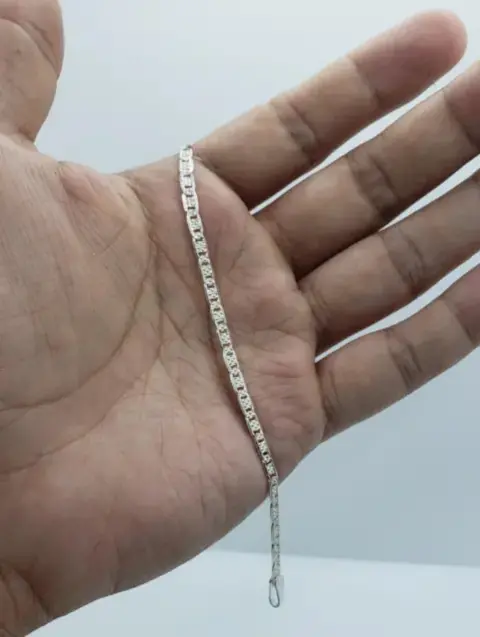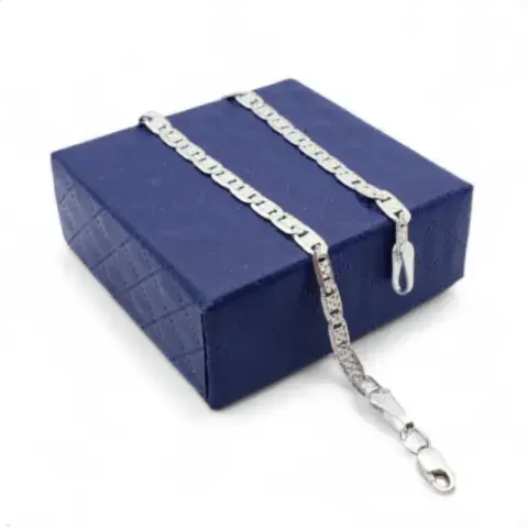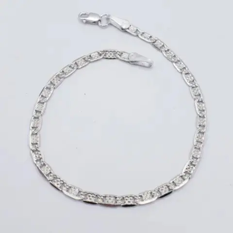 • Pulsera de tejido estilo Valentina• Hecha en plata maciza ley .925• Relieve frontal diamantado• 20 cm de largo, 3 mm de ancho• Broche de pericoHecho por artesanos mexicanos.