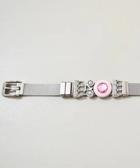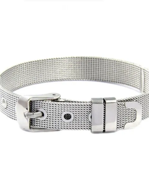 Pulsera tipo malla ajustable. PULSERA AJUSTABLE DE ACERO INOXIDABLE PLATA(Incluye los dijes de la foto)¿Te gustaría obtener una pulsera a tu medida? Aprovecha esta oportunidad con esta pulsera ajustable, para que así te evites el tener que llevarla a arreglar o que no te quede. Es ideal para un regalo. Además de ser elegante y tener piedras de zirconia que la hace lucir mejor.Tamaño: AjustableSe puede ajustar de 5.5cm hasta 8cm de diámetro.Perímetro: 14.5 cm-19.5 cmCircunferencia de la muñeca: 13cm-19cmAncho de la pulsera: 10mmMaterial:-Pulsera de acero inoxidable chapado en plata.-Dijes de aleación de zinc.