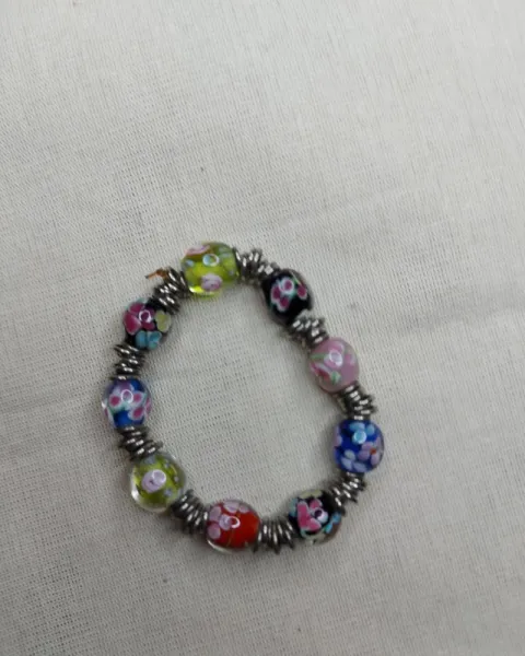 Pulsera tipo murano. Hermosa pulsera tipo murano con argollas plateadas entre una y otra, excelente regalo, tiene muchos colores y florerías en cada una de las bolsas de cristal