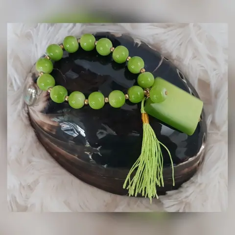 Pulsera autoajustable esferas acrílico en tono VERDE MANZANA, dije piedra natural rectangular y copete. Dimensiones cms: 6 diámetro, dije 3.5 × 2.5 diámetro.***QUEDA A UNA MUÑECA DELGADA***