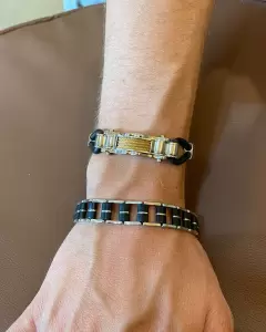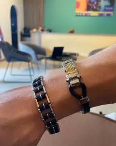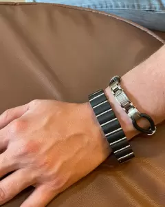 Pulseras en excelentes condiciones, de cuero con acero inoxidable, grandes, unisex perfectas para regalo o match.