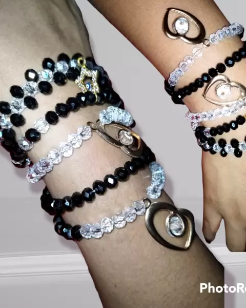 🖤🤍Pulseras de cristales negros y blancos. 🖤🤍📿Hermosas pulseras de cristales negros y blancos, llévate 3 x$150 hechas de hilo elástico 📿🖤🤍Si gustas combinarla con alguna de otro color💜🤍❤️💙, solo indicame el número de pulsera y la agrego a tu paquete 📦