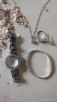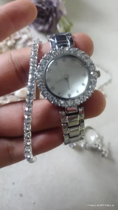 Super padrísimo reloj. Con piedritas a los lados. Pulcera, cadena aretes y anillo.. todo junto por el mismo precio. Lo entrego en cajita