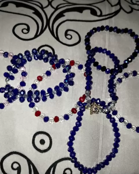 Semanario azul de cristales. 💙💎Hermoso semanario de cristales color azul💙 ideal para lucir especial cada día de la semana, son diferentes modelos y combinaciones.Incluye 7 pulseritas de hilo elástico.