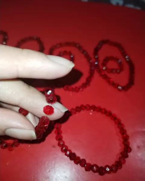 Semanario rojo ❤️. 💙Hermoso semanario de cristales color rojo, contiene 7 pulseritas de hilo elástico y 7 anillos.Medidas:❤️Pulsera: 16. 5 cm - 18cm❤️Anillo: 6 cm de diámetro