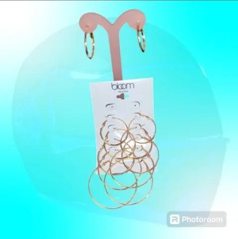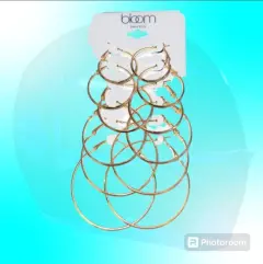Set de 5-Pares de Arracadas Bloom. Set de 5-Pares de Arracadas Bloom de fantasia en color Dorado, estilo liso con varios tamaños y cierre de precion, elegante diseño para cualquier atuendo, nuevas a estrenar con etiqueta.