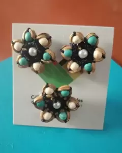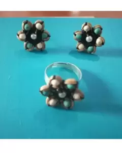 Set de Aretes y Anillo Flor Artesanal Azul. Piezas originales, modernas y de vanguardia empleando la técnica del bordado de fibras vegetales (ocoxal). 100% Artesanales de hoja de pino, únicos, innovadores y que inspiran el cuidado del medio ambiente. El anillo es ajustable Consumo con propósito, consumo responsablePRECIO FIJO