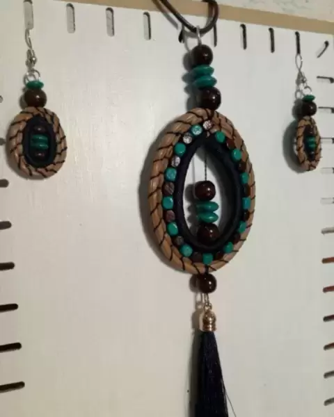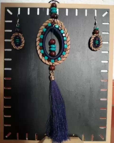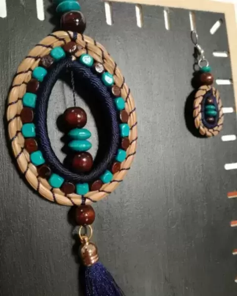 Set de Aretes y Collar Ovalado Artesanal Azul