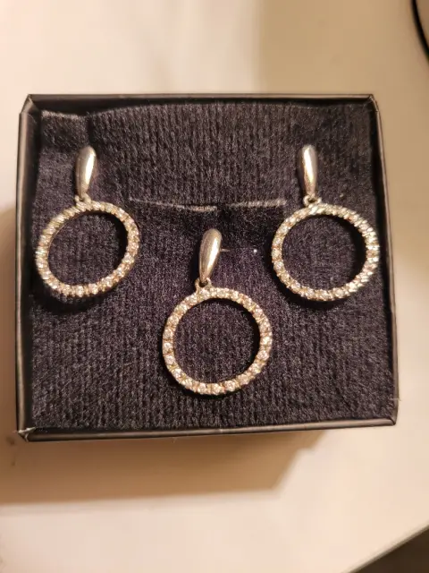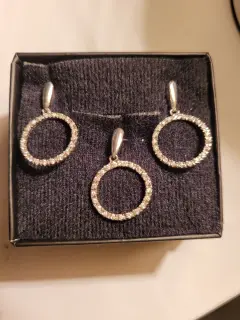 Set de aretes y dije Birma. Acabado: pulidoFantasia finaMaterial: latón Tipo de gema: zirconiaAretes cortosDije pequeñoSin cadena (no la incluía)