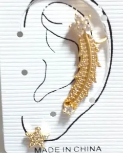 Trepador con zirconias Estrellas. Arete te Moda , trepador para doble orificio con zirconias en Acero Quirúrgico inoxidable de 316L de excelente calidad. Medida. 4cm SOLO ES UN ARETE ***