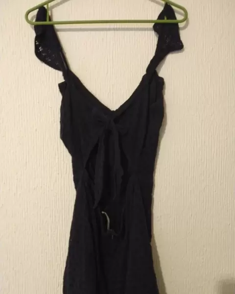 Azul marino bordado. Bonito con estilo bordado, shorts en corte v como se muestra en fotos, escote en espalda y se amarra atrás, ideal para ir a la playa