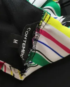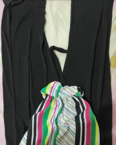 Colores palazzo. Sólo tiene una puesta, muy cómodo, palazzo sin mangas, negro de pantalón y parte de arriba colores, tiene incluido cinturón de la misma tela.