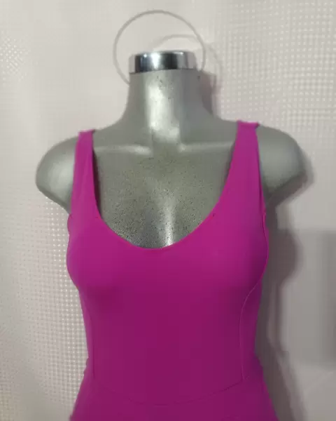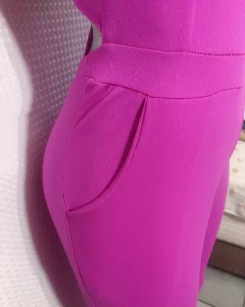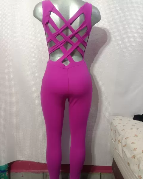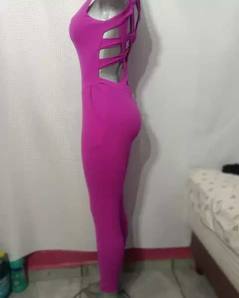 Enterizo completo con escote. Enterizo escote en tiras en la espalda color fiusha con bolsas amolda muy bonito 💜😻