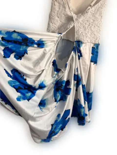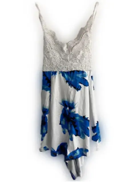 Enterizo de flores azul con blanco. Enterizo corto, Strapless, Material: Poliéster, Silueta: Semi-Ajustada Ideal para ocasión de uso casual.Talla mediana/grande.(Precio a tratar).