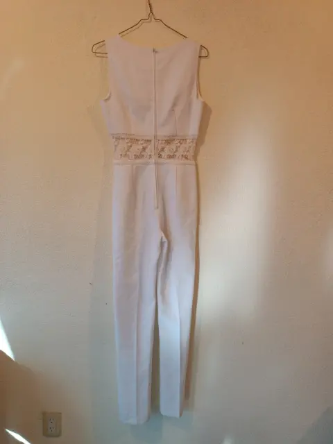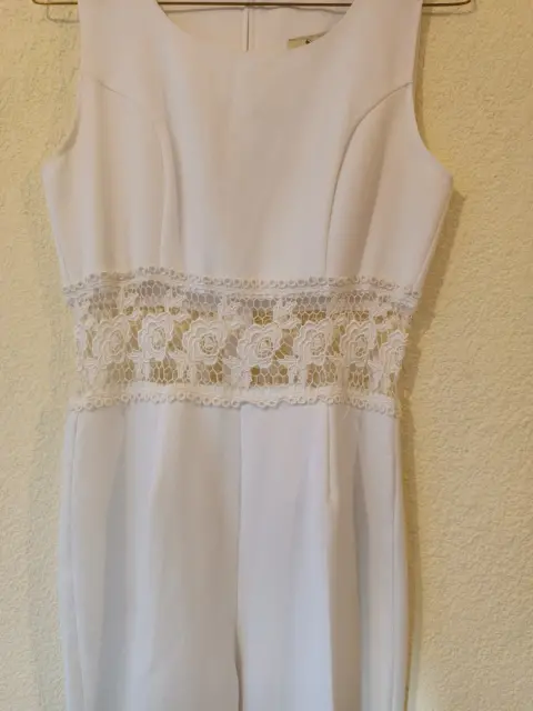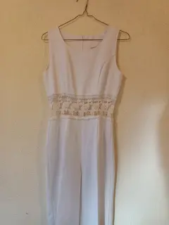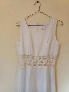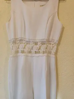 Hermoso Palazzo de Fiesta, corte recto color blanco, con cierre en la parte de atrás y detalle tipo encaja a la altura de la cintura