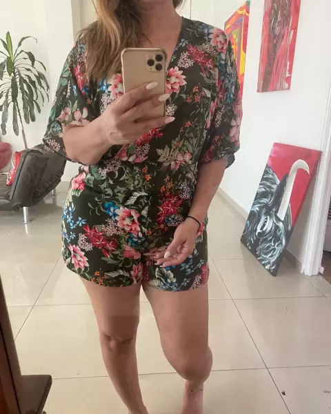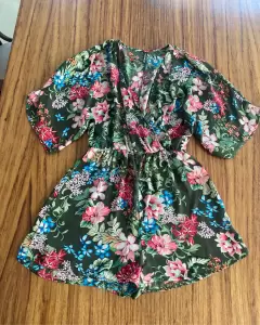 Increíble Jumpsuit verde de flores nuevo sin etiqueta, bellísimo súper cómodo y lucidor para un look moderno talla M mide 84 cm de hombro para abajo y y 49 cm de axila a axila, tiene elástico en la cintura