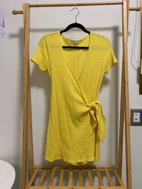 Color amarillo , tela strech, envolvente, talla mMarca Zara, corto .
