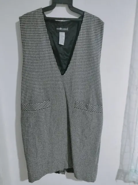 Tela gruesa con forro color negro, 2bolsitas de frente, sin descosturas, buenos acabados, limpia, sin olores extraños.