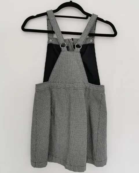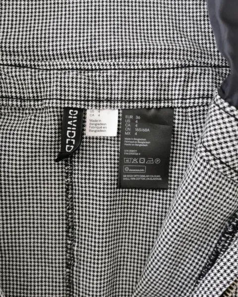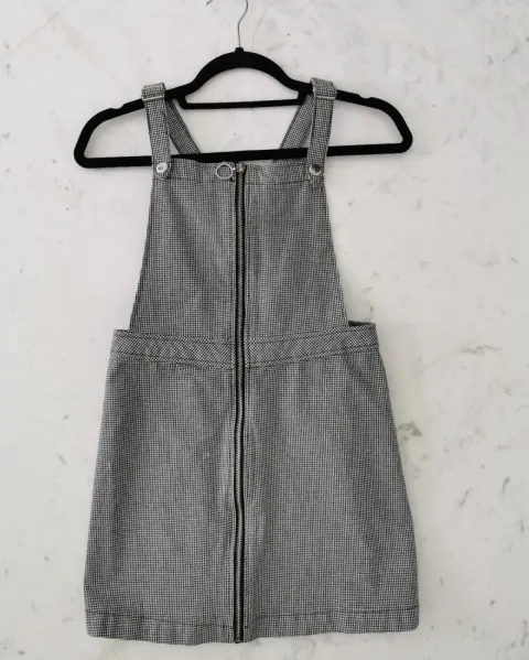 Jumper de tela tipo loneta, estampada blanco y negro. Siper expuesto al frente. Con el siper se abre todo el jumper. Talla XS.