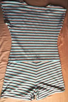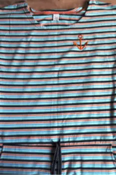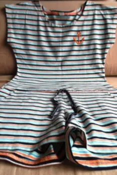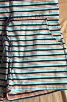 Excelente jumper de algodón, poliéster y spandex.Rayado en colores naranja, azul claro, azul marino y blanco.Muy cómodo y fresco.Trae dos bolsas frontales laterales.Y un listón en la cintura para ajustarlo.