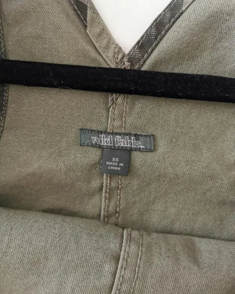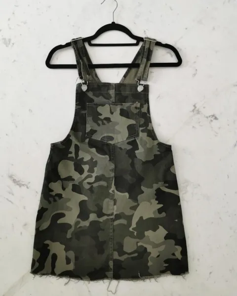 Jumper de falda Wild Fable. Jumper de tela tipo loneta, estampada en camuflajeado. Acabado deshilachado. Talla XS.