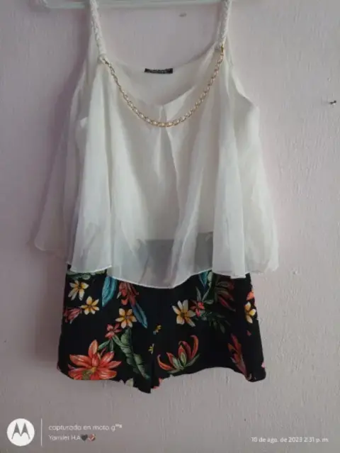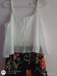 Hermosos Jumper floral corto, en la parte de arriba tiene olan, los tirantes son trenzados, está súper bonito y en perfectas condiciones para que te lo lleves de inmediato, tiene incluído el collar, es tela fresca, estira un poco, sin detalles, talla GPregunta sin compromiso