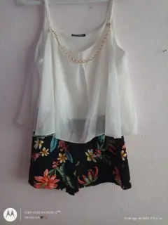 Jumper Floral. Hermosos Jumper floral corto, en la parte de arriba tiene olan, los tirantes son trenzados, está súper bonito y en perfectas condiciones para que te lo lleves de inmediato, tiene incluído el collar, es tela fresca, estira un poco, sin detalles, talla GPregunta sin compromiso