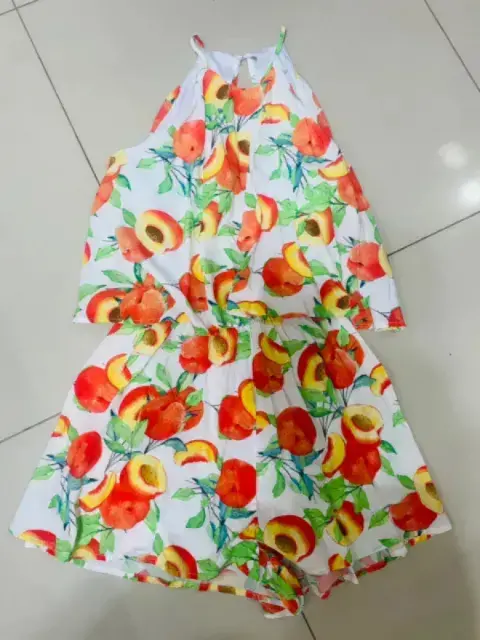 Estampado con duraznos, súper fresco y cómodo, está forrado por debajo! Está nuevo y sin detalles!