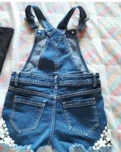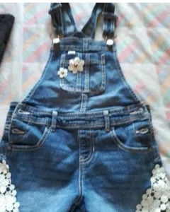 Hermoso jumpers de mezclilla azul con bonitos detalles de flores en los lados está lindo talla mediano 7/8