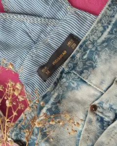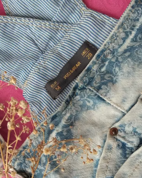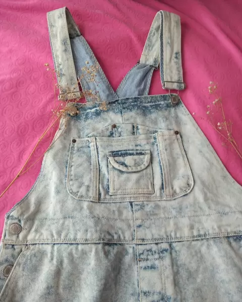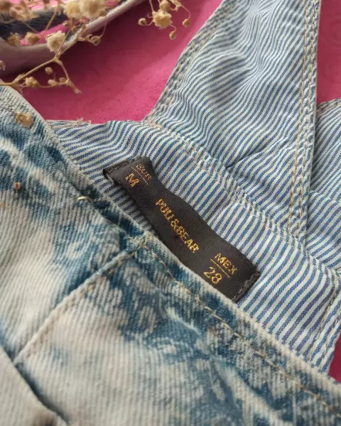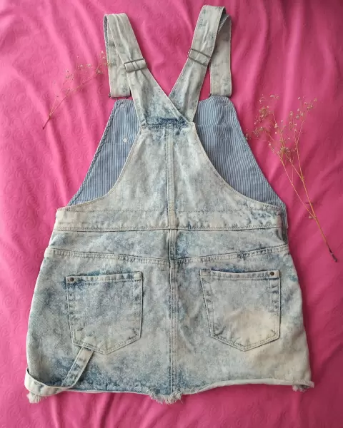 Overol de mezclilla talla mediana, marca pull&bear, es falda, tirantes ajustables, diseño en dos tonos. Bolsas atras y enfrente.